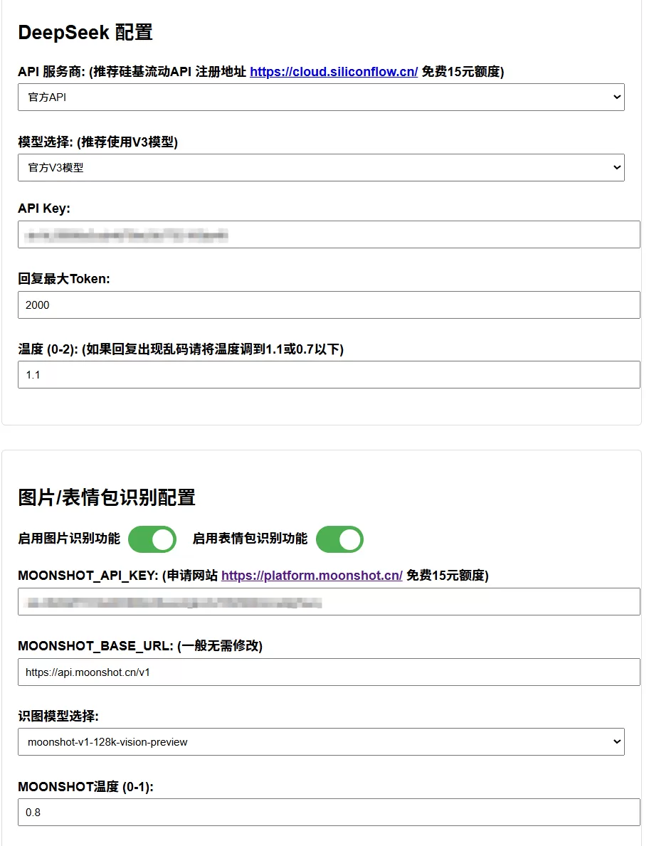 部署好后会自动跳转到后台网页,在后台上面进行相应的api接入,以及功能配置。